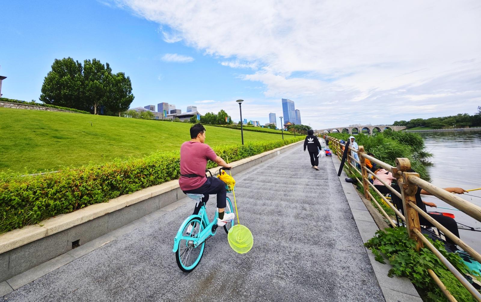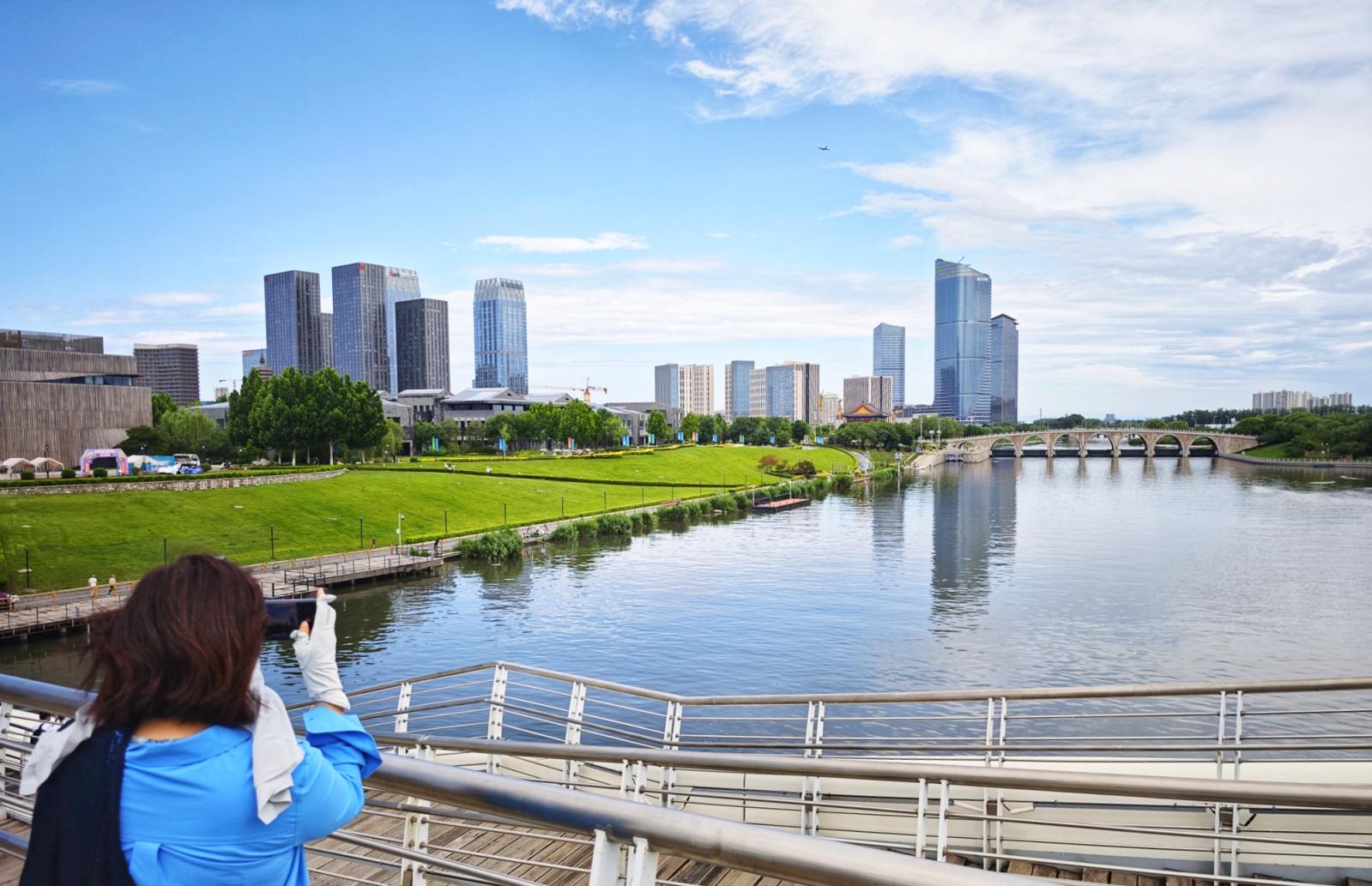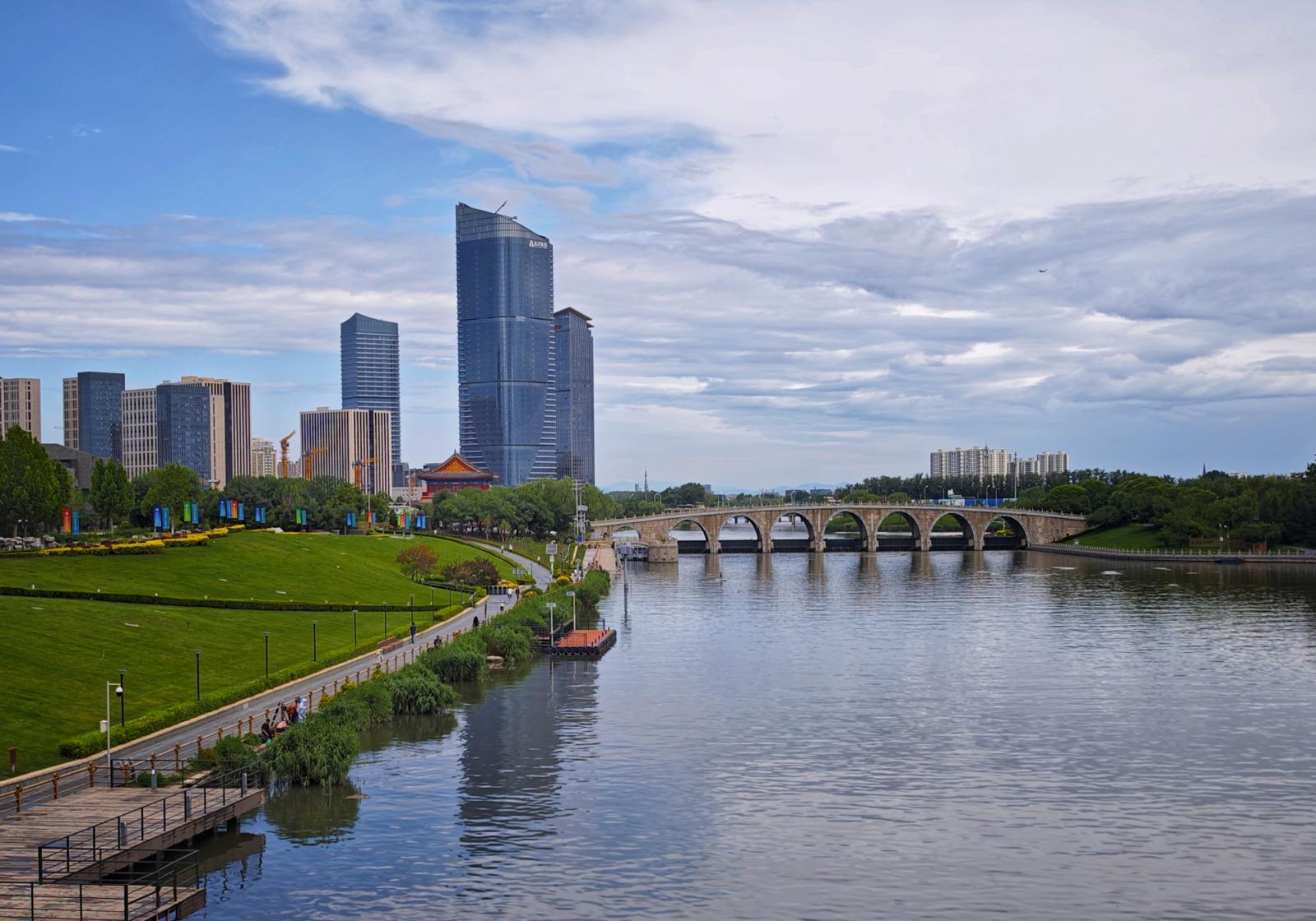 6月15日,降雨过后,通州大运河迎来了令人陶醉的美景。在阳光的照耀下,大运河河水波光粼粼,倒映着湛蓝的天空、洁白的云朵,两岸的郁郁葱葱,映衬着大光楼和千菏泻露桥,构成了一幅如诗如画的美景。